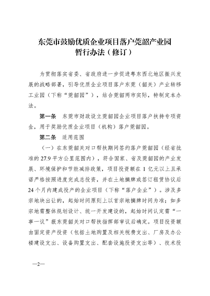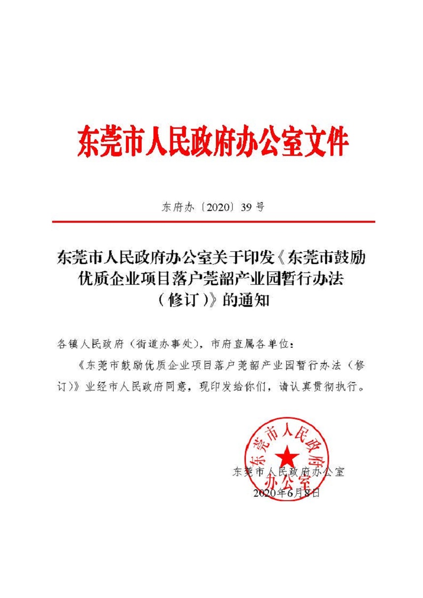 附件:转东莞市人民政府办公室《东莞市人民政府办公室关于印发《东莞市鼓励优质企业项目落户莞韶产业园暂行办法(修订)》的通知》.pdf