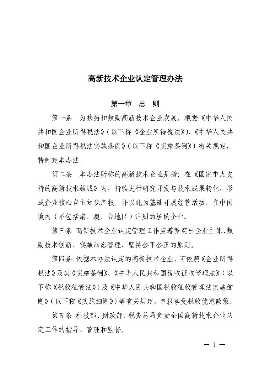 高新技术企业认定管理